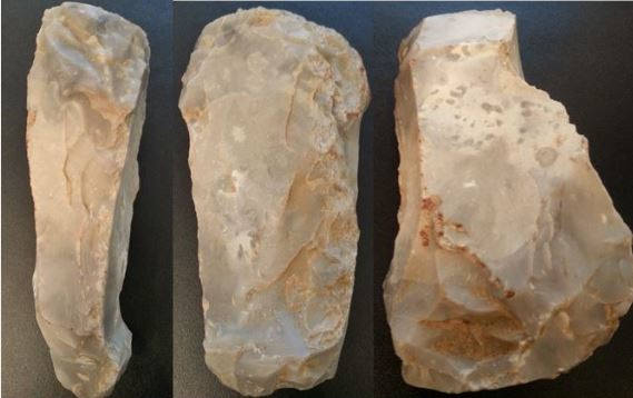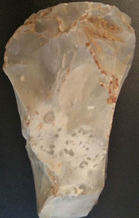En parlant d'hachereau justement j'ai une autre pièce trouvé en champs dont je me demandais si elle était antropique ou pas et une petite visite aujourd'hui au musee de saint germain en laye m'a permis de voir un outil fort ressemblant et donné pour hachereau justement.
