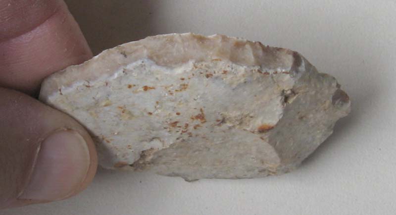 Dans le cas présenté par Daniel on ne sait ou est le bulbe , donc pas évident ,ce qui est sur c'est que cet outil a une double patine ,une ancienne blanche sur l'éclat ,et une de la couleur du silex d'origine au niveau de la retouche ,ce qui veut dire que c'est une ' reprise ' donc il a pu servir a deux périodes différentes ... Certains éclats ont servis au paléo moyen ou Sup.. et réutilisés au Néolithique .