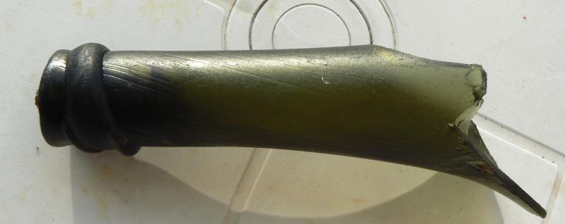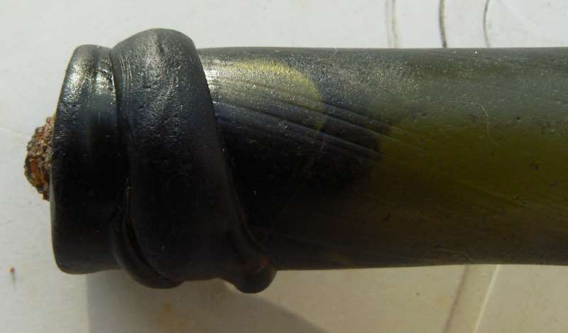 Cette bouteille enfin ce col me semble plus récent que la précédente , l'annelet est original, peut-être 19em ? Cassée avant d'être bu Merci pour vos avis.