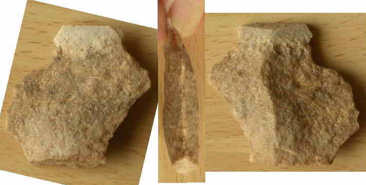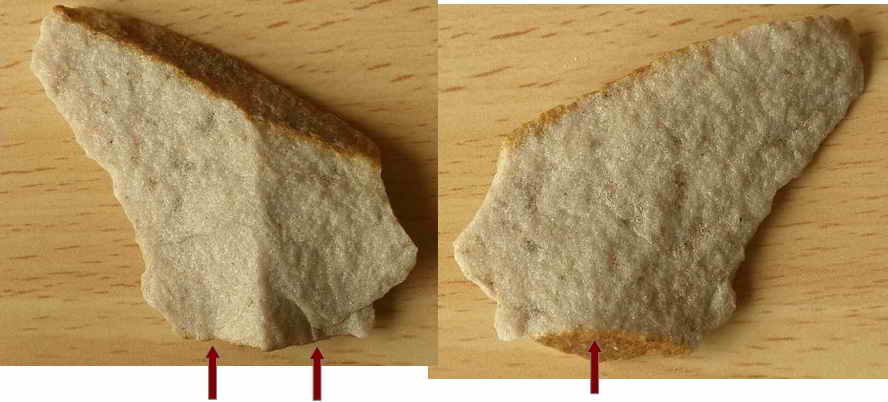 Par contre, comme j'ai des dizaines d'éclats trouvés sur une souche renversée en forêt ,dont certains sont plus parlants et dans un grès lustré plus fin, on peut y croire.