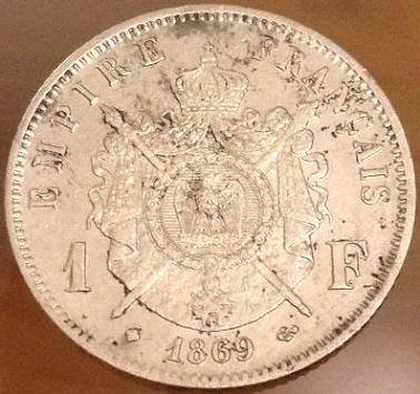 Quand je l'ai sortie, elle était trés patinée couleur sombre avec des reflets verdatres (style cuivre). J'ai donc cru au départ qu'elle était trés bien conservée mais ne pensais pas à de l'argent. C'est en regardant la tranche (rainures encore visibles) que j'ai pigé que sa matiére 1ere était du solide, et en grattant un peu la couleur blanche est apparue. A noter que toutes les napo que j'ai trouvé depuis 4 ans sont savonnettes +++