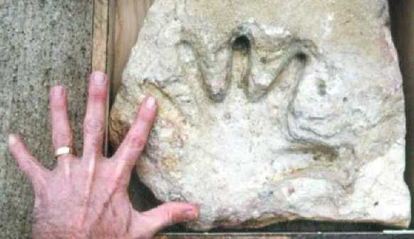 3 - Les fossiles, comme que nous avons appris dans l'école primaire, apparaissent dans les roches qui étaient il y a des milliers formés d'années. Pourtant il y a un certain nombre de fossiles qui ne font pas juste le sens géologique ou historique. Un fossile d'une empreinte de main humaine, par exemple, a été trouvé dans le calcaire évalué pour avoir 110 millions d'ans. Ce qui semble être un doigt humain fossilisé trouvé dans le Canadien arctique remonte aussi il y a 100 à 110 millions d'ans. Et que semble être le fossile d'une empreinte humaine, portant probablement une sandale, a été trouvé près du Delta, l'Utah dans un dépôt de schiste argileux évalué pour avoir 300 millions à 600 millions d'années.