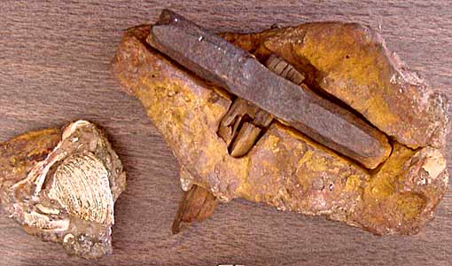 Les humains n'étaient même pas là il y a 65 millions d'années, ils ne pouvaient donc pas travailler le métal. Comment alors la science explique-t-elle des tubes métalliques semi-ovoïdes creusés de la craie Crétacée de 65 millions d'années en France ? En 1885, un bloc de charbon a été forcé pour trouver un cube métallique évidemment travaillé par des mains intelligentes. En 1912, les salariés d’une usine électrique ont cassé un grand morceau de charbon dont est tombé un morceau de fer! Un clou a été trouvé incorporé dans un bloc de grès du Mésozoïque. Ce qui posent bien des questions…