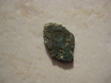 En détectant avec mon père dans un sous-bois du Morbihan, j'ai trouvé ce tout petit bout de métal ( bronze ). Je l'ai mis dans ma poche, en me disant que ce doit-être un bout de quelque chose qui gardera son mystère à tout jamais ! Et bien non !! ( comme quoi il faut tout garder )! En nettoyant ce petit bout de bronze ( dimensions : 17 X 11mm ) je me suis aperçu qu'il s'agissait en fait d'une monnaie !!!! Donc, je vous pose la question : A votre avis ( vu l'état ) quelle est cette monnaie ? La face que je vous présente est HS, mais l'autre face est identifiable ! Bon, ne vous attendez pas à voir une superbe monnaie d'une rareté inimaginable !!!!!! A vous de jouer ou de proposer ! ( réponse en début de soirée ). Amicalement