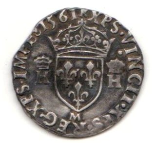 un1/2 teston de Charles IX,1561, au portrait de Henri II