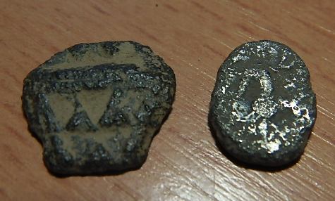 deux monnaies , dont une en argent, je les nettoye avec les trouvailles d hier