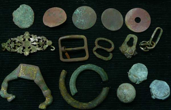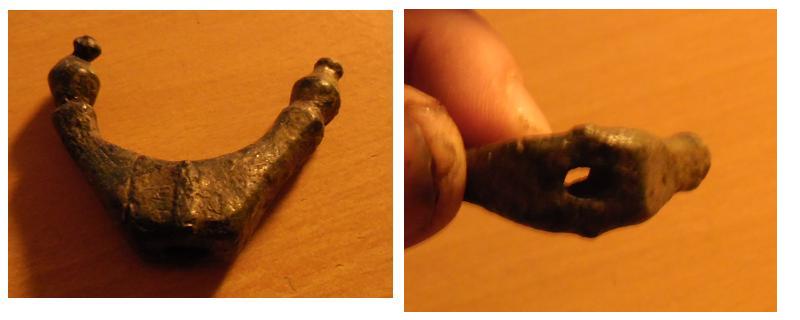 L'objet, en bas, à gauche, est une boucle du XIIIè siècle qui a perdu sa partie support ardillon... Il y en a une, repérée MA36 dans un livre désormais célèbre qui lui ressemble beaucoup...