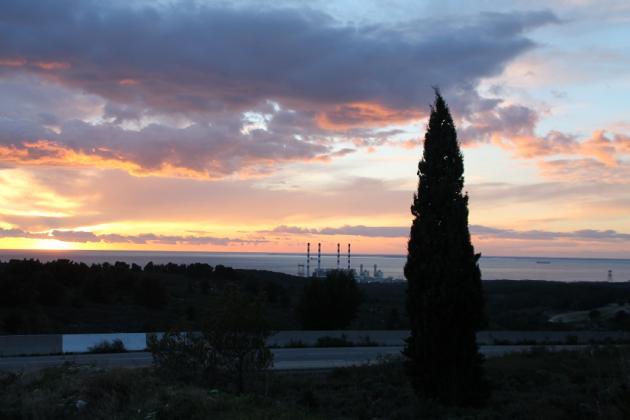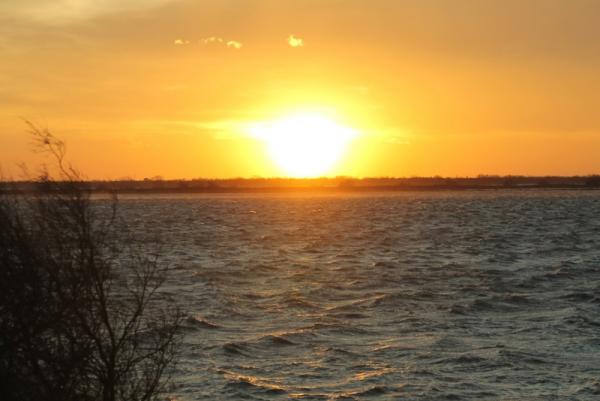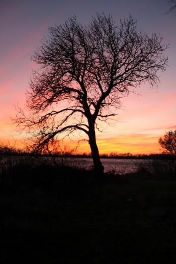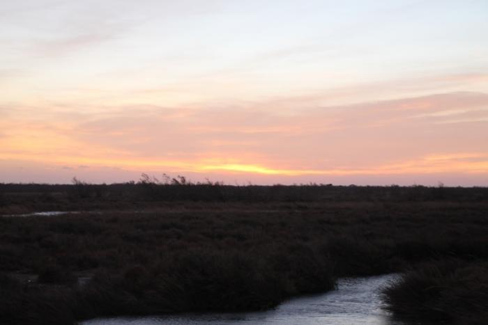 Couché de soleil sur la Camargue la semaine passée Au 1er plan, le Rhône