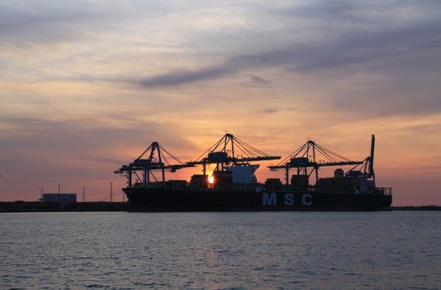Aujourd'hui au port, un porte conteneurs sur le meêm môle d'amarage de la photo ci dessus..