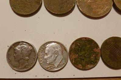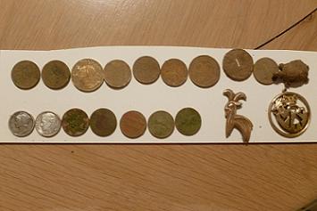 [1853] , a tous, ma sortie de 3h00, monnaie française, monnaie américaine,dont deux en argent, et une petite voiture, pour le partage, bonne soirée a tous.