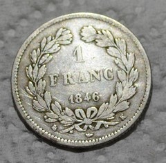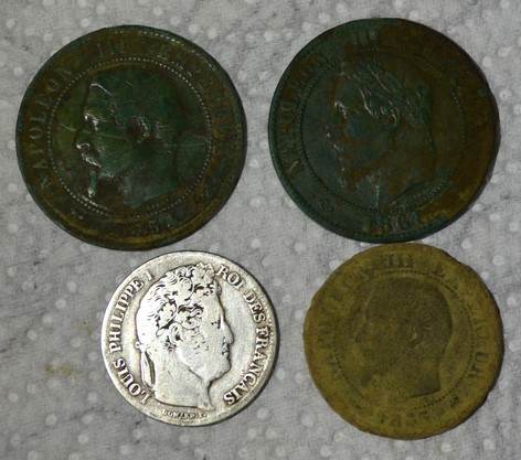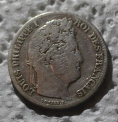 Après plusieurs sorties vraiment pas riche en trouvaille, aujourd'hui une petite sortie dans un bois qui m'a offert cette petite boursée qui fait plaisir avec cette jolie 1 franc Louis Philippe 1846 K... ma première