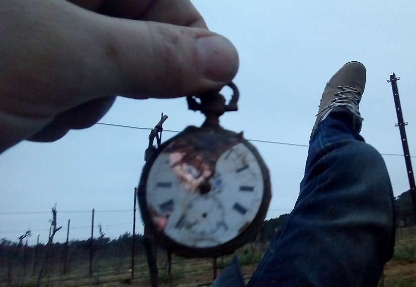 [1877] Voila la photo prise sur le moment, si vous vous demander pourquoi j'ai le pied en l'air c'est parce que lorsque j'ai creusé et que j'ai vue la montre briséej j'ai directement pensé que je l'avais cassé avec mon piochon