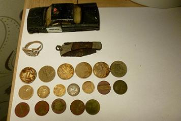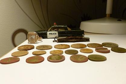 [1853] a tous, sortie du jour, monnaie américaine, française, une bague fantaisie, un petit canif, une voiture, et un jeton de téléphone, pour le partage, bonne soirée a tous.