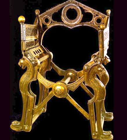 Mgnifique objet Kimboo. j'ajouterais que ce 'trône' a servi pour le couronnement des rois de France, et que seule la partie basse (le tabouret, quoi !) est originel, le reste (dossier, appuie-bras) ayant été ajouté bien postérieurement.