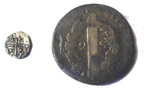 1 monneron 1792 de 40 mm et une obole Vindelici de 8 mm pour 0,41 g