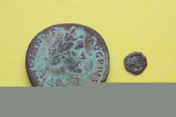 - a gauche un sesterce d' Antonin le pieux de 33 mim