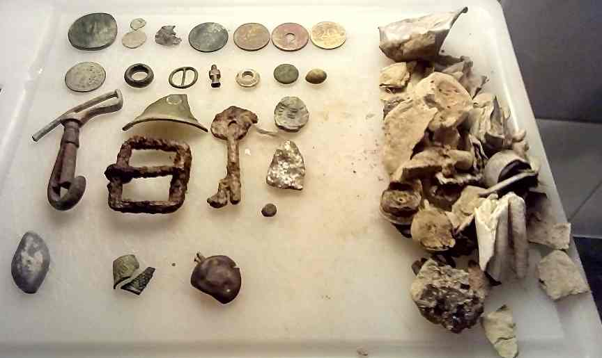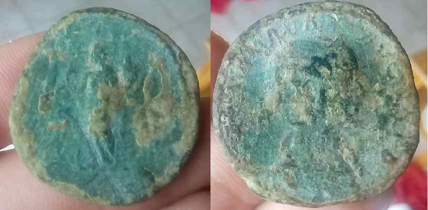En partant de la gauche: 3 romaine, un morceau de denier en argent je pense, Napoleon III 1865 avec une belle patine, 20 franc 1950, 25 cts 1927, bien sur un as de nimes entier ! elle sont énorme ces pièces !