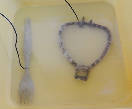 [19] Un peu (beaucoup) de bicarbonate de soude dans l'eau, tout est branché et c'est parti. Vu les bulles, ça marche, enfin j'espere....