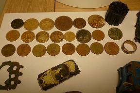[1853] , a tous, sortie du jour, des monnaies, des jouets, une cuillère, une bague fantaisie, et une genre de boucle, pour le partage, bonne soirée a tous.