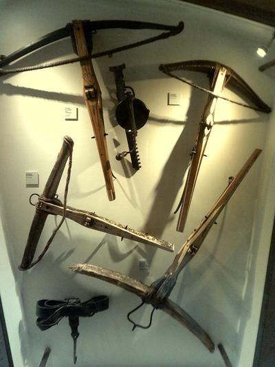 et j'ai aussi vu un type d'arbalète que je ne connaissais pas, des petits modèles fluets et finement décorés de marqueterie d'os ou d'ivoire prévus pour la chasse aux oiseaux et projetant une petite pierre ou une bille de plomb, malheureusement l'éclairage des vitrines n'était pas génial pour mon petit apn