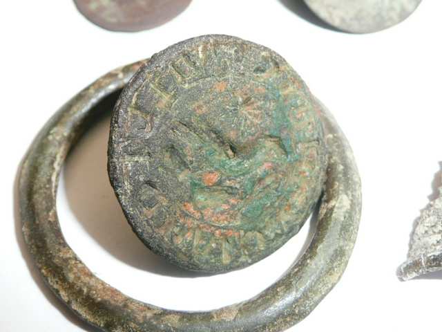 Et puis un sceau, cassé et pas mal bouffé. Je vais voir si je peux en tirer quelque chose avant de le poster pour identification.