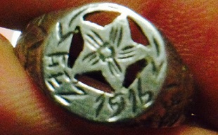 Moi personnellement j'y vois un HEZ 1916. Je confirme que ce n'est pas fait par un bijoutier ou alors par son apprenti