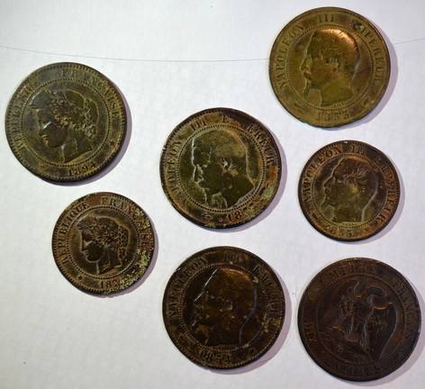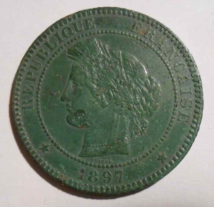 J'ai regardé dans mes monnaies XIXème et ai sorti quelques exemplaires à la jolie patine marron. Ces monnaies patinées de la sorte ont toutes été trouvé dans des prés en bordure de rivière...