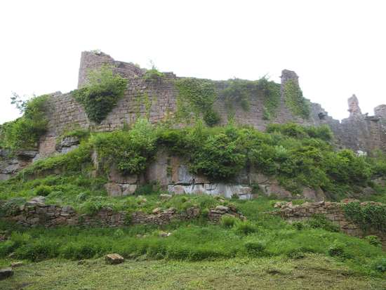 [1854] Au dessus du Mur Païen, et semblant former une sorte de mu d'enceinte autour du château, un autre mur, accompagné de deux grands blocs de pierres en menhir (pilastres) posés de chaque coté du chemin, est quand à lui daté sans certitude de 2000 ans avant JC !