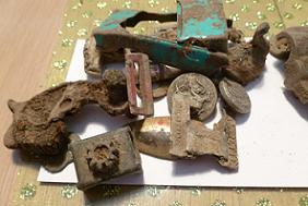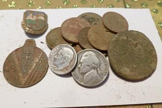 [1853] , a tous,je viens juste de rentrer de ma sortie, tout les objets sont dans leurs jus, j' ai détecter sur un prés fraichement labourer et rien du tout, je suis reparti sur mon terrain habituel, voila le résultat, une voiture, un camion,un cygne, un genre de pin's , une médaille , pièces américaine,dont deux en argent, française, et quelques morceaux de voitures, et une médaille religieuse , je ferai des photos après nettoyage,pour le partage bonne soirée a tous.