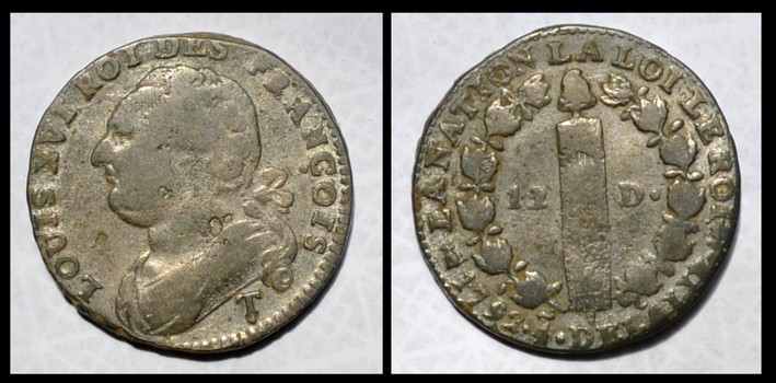 Voici un joli douze deniers 1792 T pointé (Saumur), trouvé hier dans un bois qui m'a fait super plaisir !!!