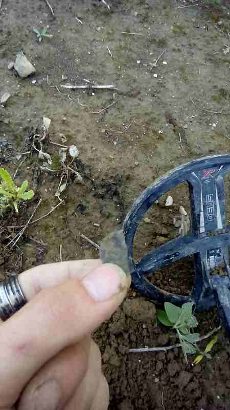 [1877] Et une autre pièce en argent ou billon plié celle la, je pense a un denier quelque chose mais il ne reste plus bcp de relief