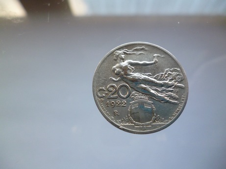 est une 20 cents ( 0,20 lira ) de 1922 en nickel de 4 g pour 2,1 de diam. Sortie d'un massif