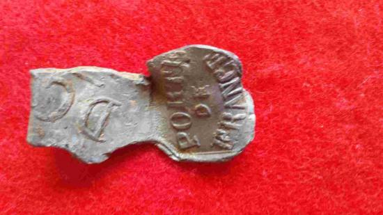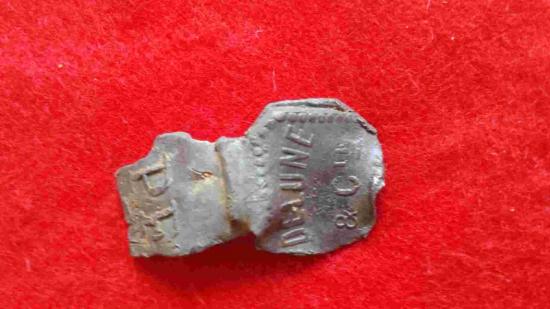 Fortuité hier près de la maison ce plomb de scellé de sac de ciment datant de 1880 à 1900,