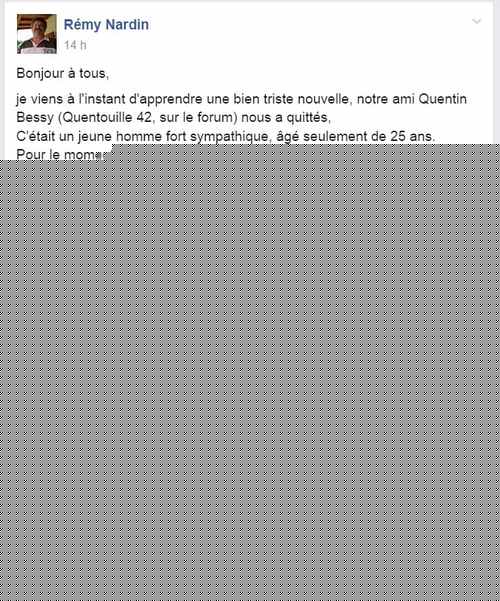 Je ne connaissais pas Quentin mais j'adresse mes plus sincères condoléances à la famille.. Perde ses enfants c'est, je pense, le pire qui puisse arrivé.