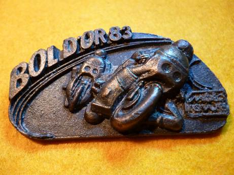 Trouvé en sous bois cette belle broche du Bol d'Or 1983 ou elle était offerte a cette époque,