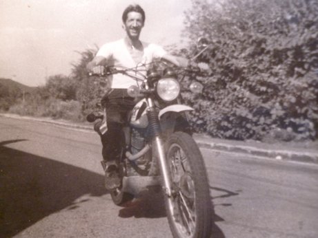 Le noir et blanc c'est parce que la photo est d'époque ? Quelle époque d'ailleurs? A identifier avec la moto...