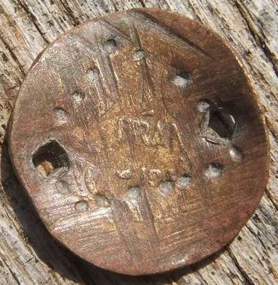 J'ai mis un bout de temps avant de comprendre que cet objet était à l'origine une 10 francs Guiraud qui a été limée, polie, poinçonnée et perforée pour servir de bouton. Avez-vous déjà rencontré ce type de transformation sur une monnaie ?