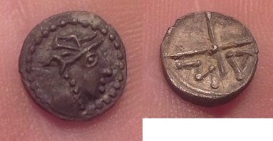 Pour le partage 11mm et 0.5g d’argent trouvée en centre Var. J’ai transmis les informations de découverte à Jean-Albert Chevillon, « le » spécialiste de ce monnayage, qui l’intégrera dans une future publication sur les oboles scyphates. Cette merveille est bien sûr restée propriété de son découvreur anonyme.