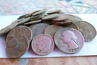 [1853] ,a tous sortie de 5h00, monnaies, insigne, une voiture, un cheval, une bague, pour le partage, photo après nettoyage, bonne soirée a tous.