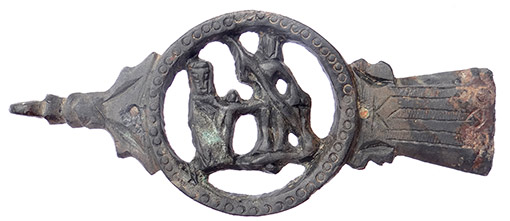 Je ne connaissais pas les 'ferrets en balancier d'horloge'... Je farfouille sur le forum et sur gougueule. Je tombe sur un site où on voit, à peu de chose près, le même que le tien! Sur le site en question, ils le définissent comme fermoir de demi ceint (XVe siècle). Plus qu'à trouver le deuxième...