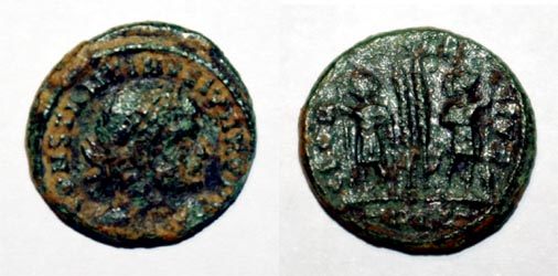 Le petit nummus de Constantin Ier d'en haut à droite en cours de netttoyage.