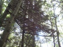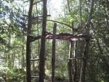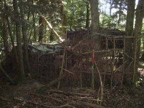 Quelle n'a pas été ma surprise de découvrir en plein sous-bois, lors d'une partie de détection, de tomber sur une cabane en bois réalisée par des jeunes, avec tout ce qui va avec : poste de garde dans les arbres, juste au dessus et les restes des échelles faites de branches !
