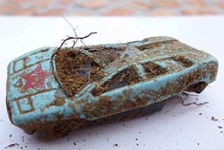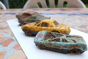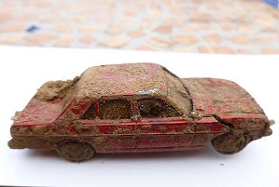 [1853] , a tous de retour dans mon bac a sable, quatre voitures, un bonhomme, et quelques monnaies, pour le partage, photos après nettoyage, bonne soirée a tous.