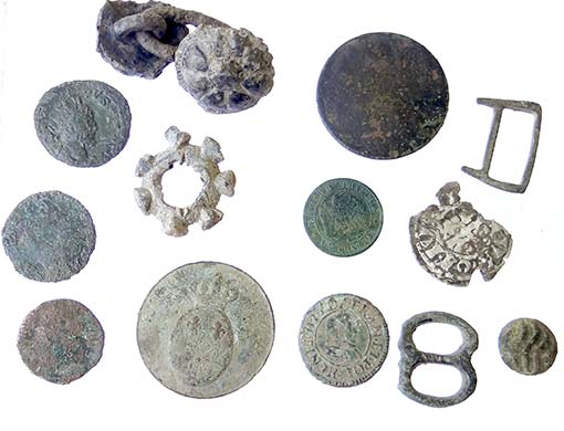 Je crois que je vais mettre la grosse rondelle en id, car j'y vois dans un reflet, un profil de madame Ă gauche, avec un petit chignon, et au revrs, un personnage assis avec un genre de sceptre Ă la main..type romaine? j'y crois pas...la forme est trop neuve...Si les photos sont possibles...