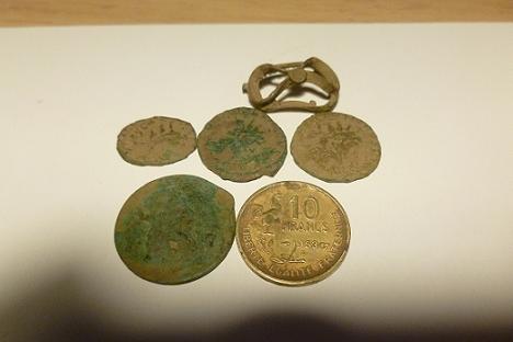 [1853] , a tous, sortie du lundi, 3 romaines, une dix francs, et une monnaie en cuivre, photo après nettoyage, bonne soirée a tous.