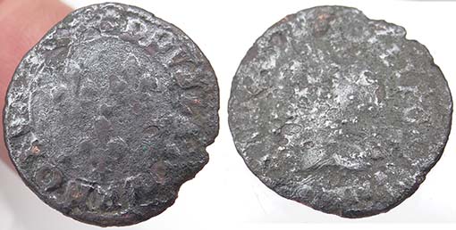 J'avais trouvé un Double Tournois (Henri IV, si je me souviens bien) recouvert d'une fine couche argentée ..