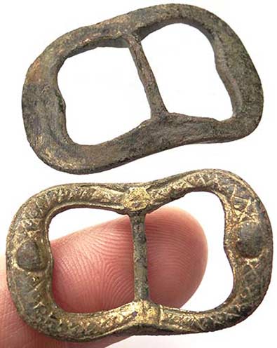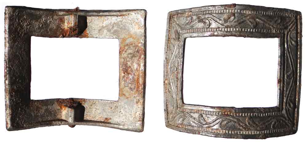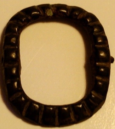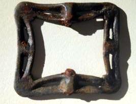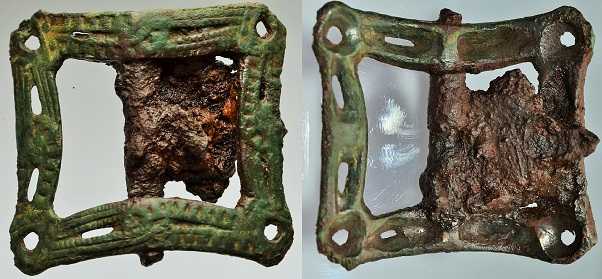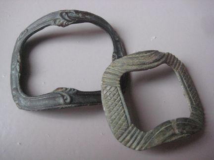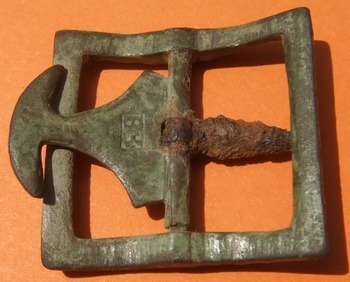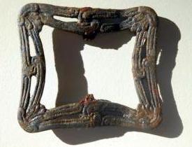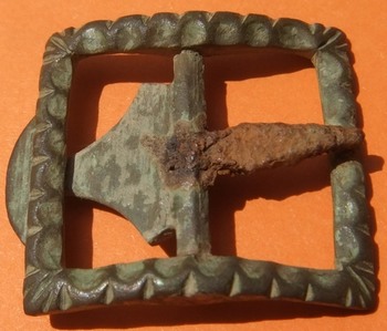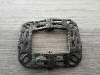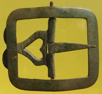 Celle-ci vient du Haut-Rhin : boucle et chape en cuivre ou laiton, et ardillon de fer