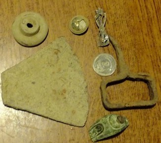 je présenterais en identification la petite broche et le 'bitoniau ' en bas à droite