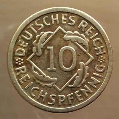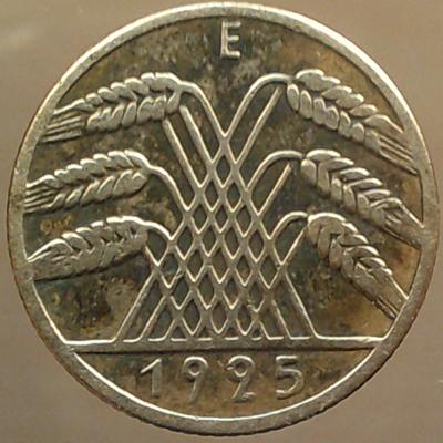 10 pfennigs 1925 (et oui, j'en suis quand même très fière) (et merci Bidouille pour le nettoyage et les photos) :