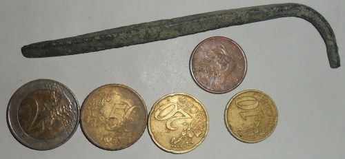 Nous avons trouvé le truc en bronze, puis une boursée d'euros dans le même trou puis un peu plus loin la cinquante centimes.